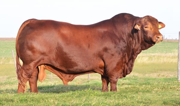 en los últimos tiempos. Comenzando por su cabeza tremendamente expresiva y su cuello bien masculino, inserto en un físico imponente, con pronunciado arco costal y terminando con excelente aplomos, muy buena CE y correcta línea de lomo y línea inferior. Muy ancho visto desde atrás con músculos bien descendidos de pelaje colorado intenso, pelo corto con excelente grado de acebuzamiento. Use visionario para aportar calidad racial, tamaño moderado, mucha carne y volumen corporal, sus primeras crías nacidas confirman su gran fenotipo.